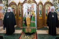 Его Высокопреосвященство архиепископ Кокшетауский и Акмолинский Варсонофий молился за Патриаршим богослужением в Успенском кафедральном соборе Астаны. На молебне молились прихожане храмов Кокшетауской и Акмолинской епархии и православное сестричество милосердия в честь Владимирской иконы Божией Матери, впервые созданное на Акмолинской земле и в Русской Православной Церкви Казахстана.