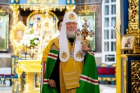 18 сентября 2025 года Святейший Патриарх Московский и всея Руси Кирилл совершил чин малого освящения храма преподобного Сергия Радонежского в столице Республики Казахстан г. Астане.