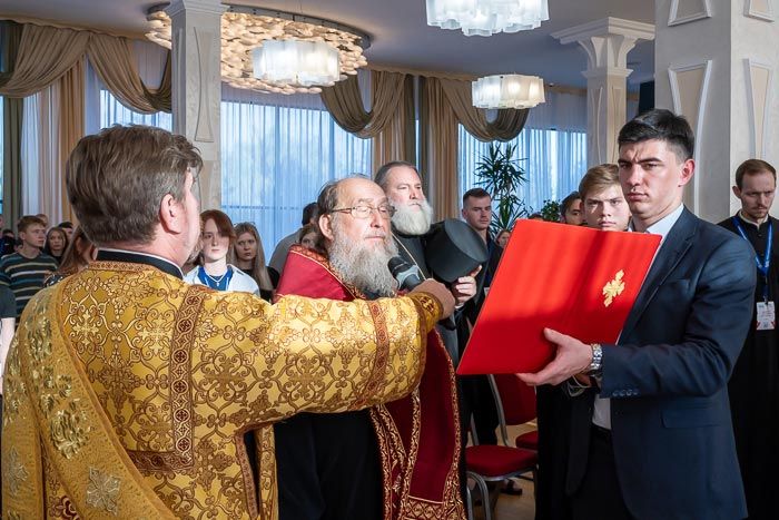 «На молодом поколении всегда лежит особая ответственность за будущее. И все вы, юноши и девушки, своими словами, идеями, поступками и устремлениями уже сейчас начинаете определять, какой станет реальность, в которой мы будем жить в ближайшее время. Здесь, наверное, у многих возникает вопрос: «Что и как мне, самому обычному человеку, сделать для торжества любви, истины и веры в этом мире?» На эти сомнения отвечает нам апостол Павел: «Все могу в укрепляющем меня Иисусе Христе» (Флп. 4:13). Cила молодого поколения в умении объединяться, дружить и сообща решать сложные задачи. Съезд, который мы проводим уже в десятый раз, дарит нам замечательную возможность сплотиться во имя благородных целей. Каждый из нас уникален, неповторим и каждого из нас Бог наделил особыми талантами, дарованиями, способностями. В дружеском соработничестве, в синергии, эти дары усугубляются, обретают мощь и энергию и то, что казалось невероятным для одного человека, становится вполне осуществимым и достижимым в коллективе единомышленников» – сказал, в частности, архипастырь.